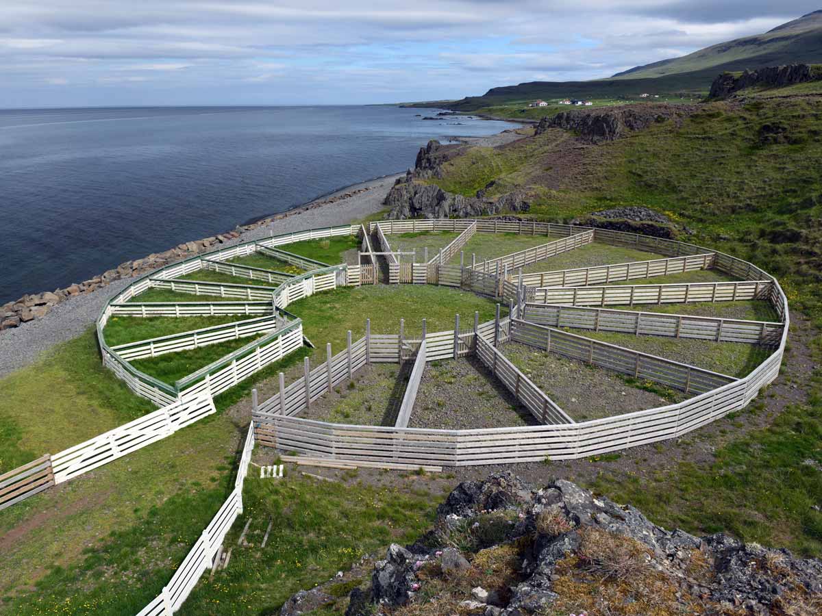 Isländischen Schafe leben den Sommer über frei in der unberührten Natur Islands. Mit Beginn der kalten Jahreszeit werden sie von den Farmern mit Hilfe von Freunden und Verwanden zusammengetrieben. Zu Fuß, zu Pferde oder sehr beliebt - mit dem Quad - werden die Tiere mit lautem Getöse talwärts getrieben um den Winter in Ställen zu verbringen. Bei großen Abtrieben geht es im Tal zuerst Richtung 'Sortieranlage'. Aus der Mitte heraus kann jeder 'seine' Schafe in ein eigenes Segment ziehen, was faszinierender Weise schnell und zielsicher funktioniert. Gefeiert wird der erfolgreiche Abschluss mit einem ausgelassenen Fest.