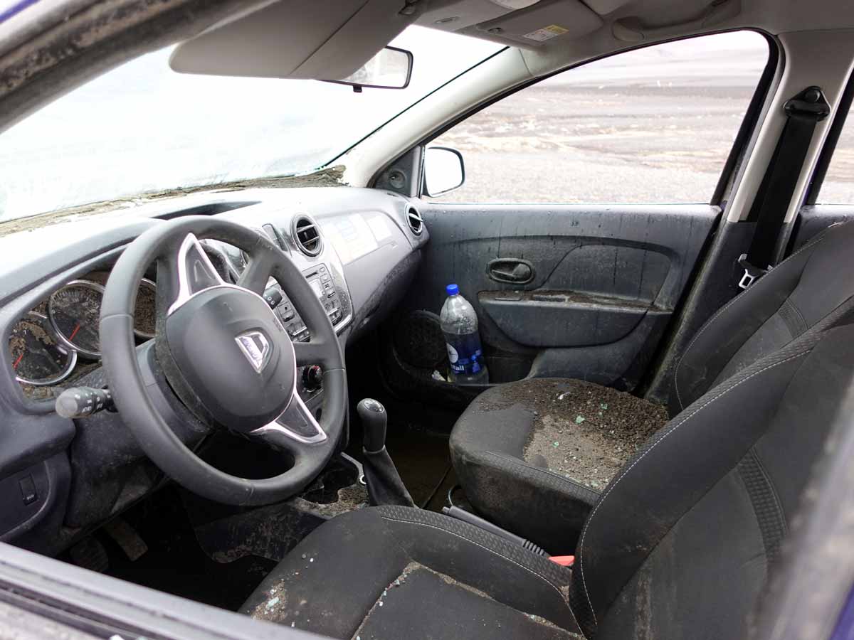 Als der Sturm am 24.09 begann war ich gerade im Hochland. Die F907 lag vor mir. Von der Stuðlagil Schlucht wollte ich zur Hochlandhütte in Laugarfell um dort zu übernachten. Der Wind blies kräftig um das Auto als ich mitten in einer schwarzbraunen Sandwüste an der Abzweigung zur F907 stand. Bilder von bis auf das Alublech blankpolierten Autos schossen mir durch den Kopf. Isländische Sandstürme hatten das verursacht und keine Versicherung hatte diesen Schaden abgedeckt. Sollte ich die 40 Minuten bis zur asphaltierten Straße am Kárahnjúkar-Kraftwerk wagen oder lieber umkehren und 3 Stunden über die Ringstraße und Egilsstaðir nehmen?