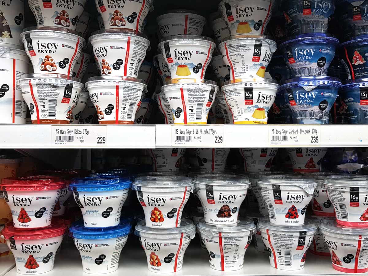 2. Wagt euch an die breite Palette des isländischen Skys, versucht alle möglichen und unmöglichen Sorten und wählt euren Favoriten. Oder wagt euch an AB-mjólk, Súrmjólk, Þykkmjólk oder Hrísmjólk. Hier findet ihr weitere Infos rund um isländische Milchprodukte