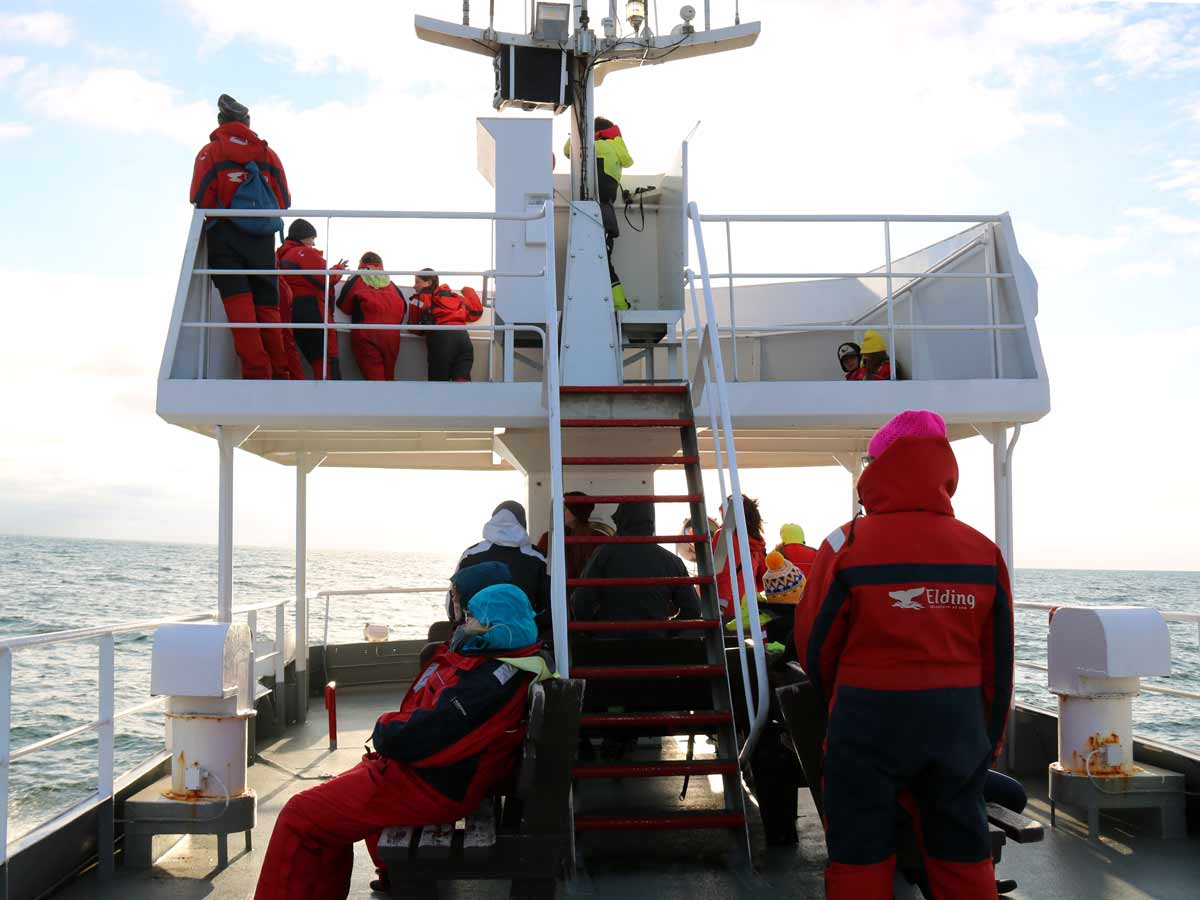 Buckelwale, Zwergwale oder Orcas in ihrer natürlichen Umgebung sehen? Das Gefühl von Wind und Meer im Gesicht während das Boot durch die Wellen pflügt auf der Suche nach den sanften Riesen. Sobald ihr die ersten Wale sichtet, ist es atemberaubend. Die riesigen Körper der Wale gleiten elegant durch das Wasser. Wale Watching ist ein Abenteuer für alle Altersklassen, bei dem ihr die majestätischen Meeresbewohner in ihrer natürlichen Umgebung beobachten könnt. In Reykjavík habt die Wahl zwischen der Tour mit einem Schnellboot (2 H), einer Yacht oder einem herkömmlichen Boot (3 H). Persönlich bevorzuge ich die Yacht bzw. das Ausflugsboot. Ich könnt euch frei bewegen, habt immer wieder einen anderen Blick auf die Wale und eine Toilette an Bord. Die knallroten Thermoanzüge erhaltet ihr direkt bei der Abfahrt. Selbst im Sommer kann es auf dem offenen Meer richtig eisig sein. Zusätzlich würde ich, sofern es euer Gepäckvolumen zulässt, Handschuhe und eine dicke Mütze mitnehmen.